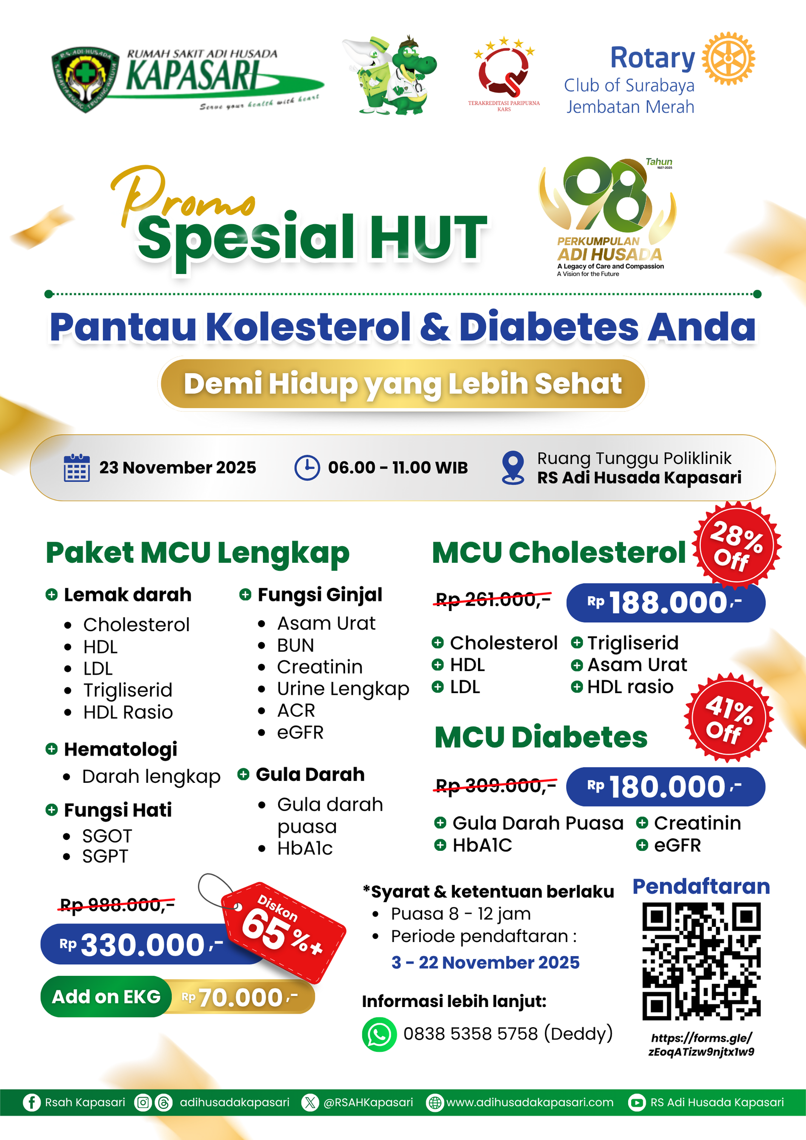 Kami sangat berbahagia sekali bisa berbagi kebahagiaan dengan RS Adihusada Kapasari. Khususnya dengan Dr Johannes Hartono. Thank U team RS Adi Husada Kapasari Dan Dr Johannes Hartono..semoga semakin sukses kedepannya